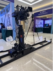 ST2100A robot tower is made by high-strength aluminum alloy, with exquisite finished molding in good appearance. The car body adopts a three direction positioning track moving mode, with motion backed up by two sets of DC motor synchronous driving servo, running smoothly and controlling the direction precisely. The column adopts the design of telescopic three-stage lifting synchronously, lifting travel in large. The eight positioned design ensures the column lift in stable and soundless. The remote head structure uses a L-type open design with big payload, which can work with all types of broadcasting and film cameras, meanwhile it can control the camera in pan & tile, focus & zoom & iris, VCR, etc. ST2100A robot tower is greatly applied to studio program productions and live shows or broadcasts. It supports the data output in virtual studio application. It is easy and friendly for use, one person can easily control the car body and the camera's lifting, moving, pan & tilt & side rotating & focus & zoom & Iris. It is a best choice for TV station and film production.